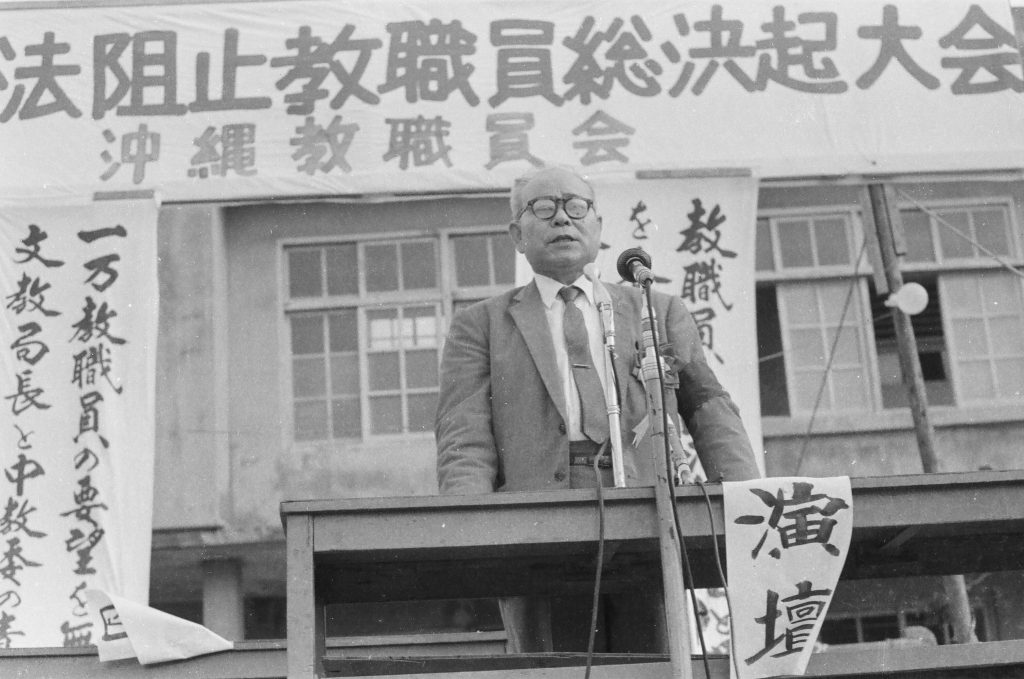 教公二法阻止教職員総決起大会 // 屋良朝苗