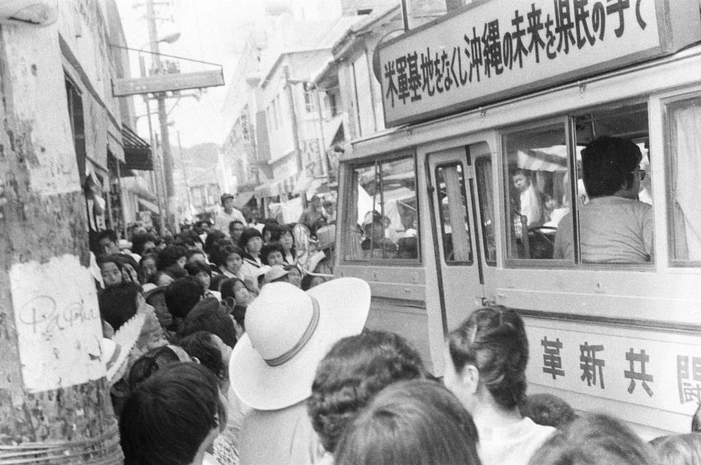 青島幸男参議員、金城睦さん応援に訪沖