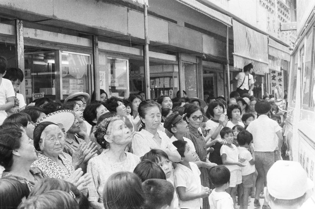 青島幸男参議員、金城睦さん応援に訪沖