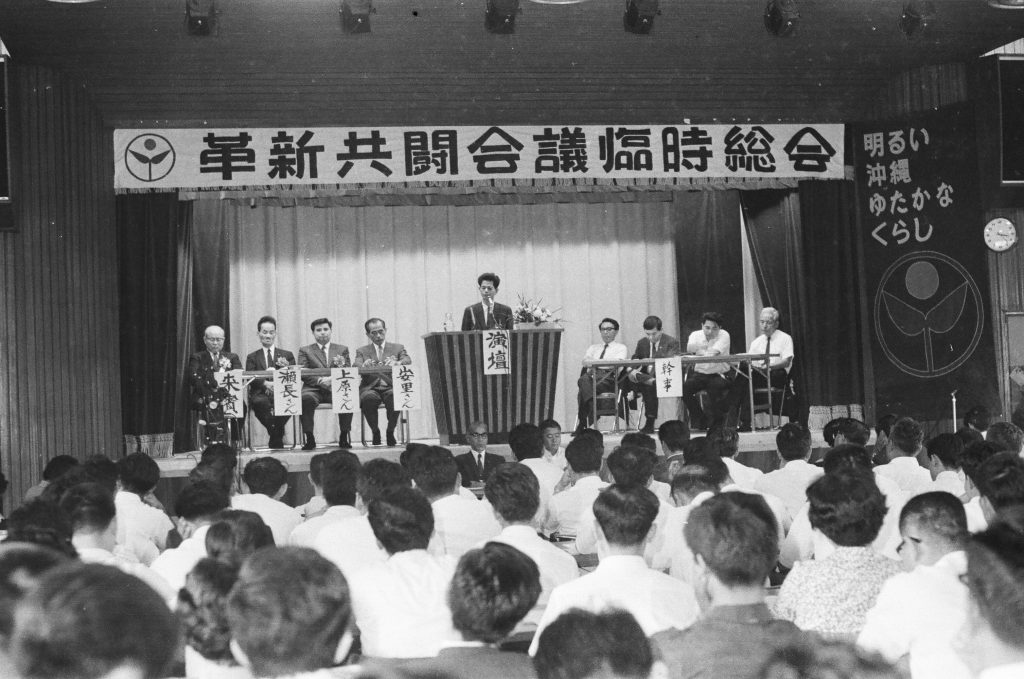 革新共斗会議・臨時総会 // 安里積千代、屋良朝苗、瀬長亀次郎、上原康助