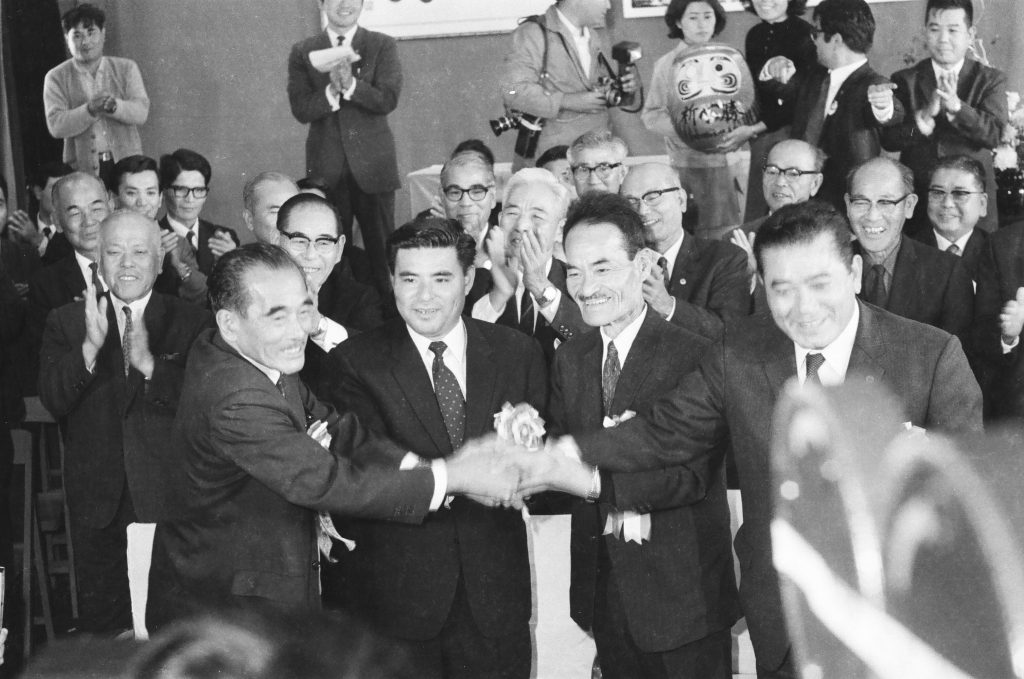戦後初の国政参加選挙 戦後初の国政参加選挙(革新共闘会議本部事務所:革新系圧勝) // 安里積千代、上原康助、瀬長亀次郎、喜屋武真栄 ID16095年月日1970年11月15日場所不明人物・組織安里積千代,上原康助,瀬長亀次郎,喜屋武真栄